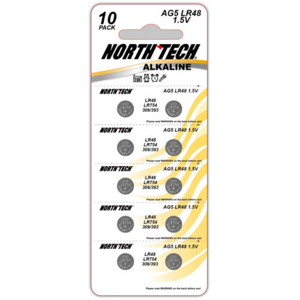 North Tech AG1 LR60 1.5V Alkaline Button Cell Batteries – 10 Pack