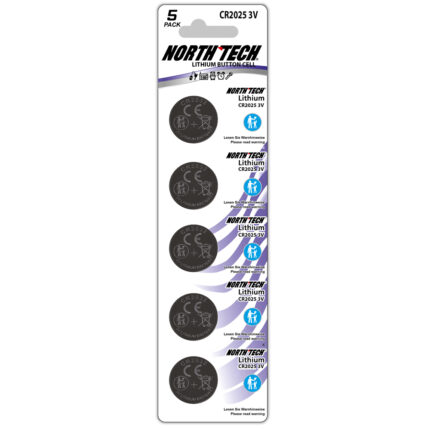 North Tech CR2016 Lithium Battery – 3V Button Cell – 5-Pack