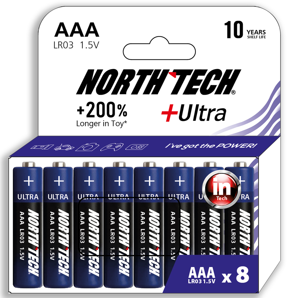 North Tech Ultra Alkaline AAA Batteries – LR03 1.5V – 8-Pack
